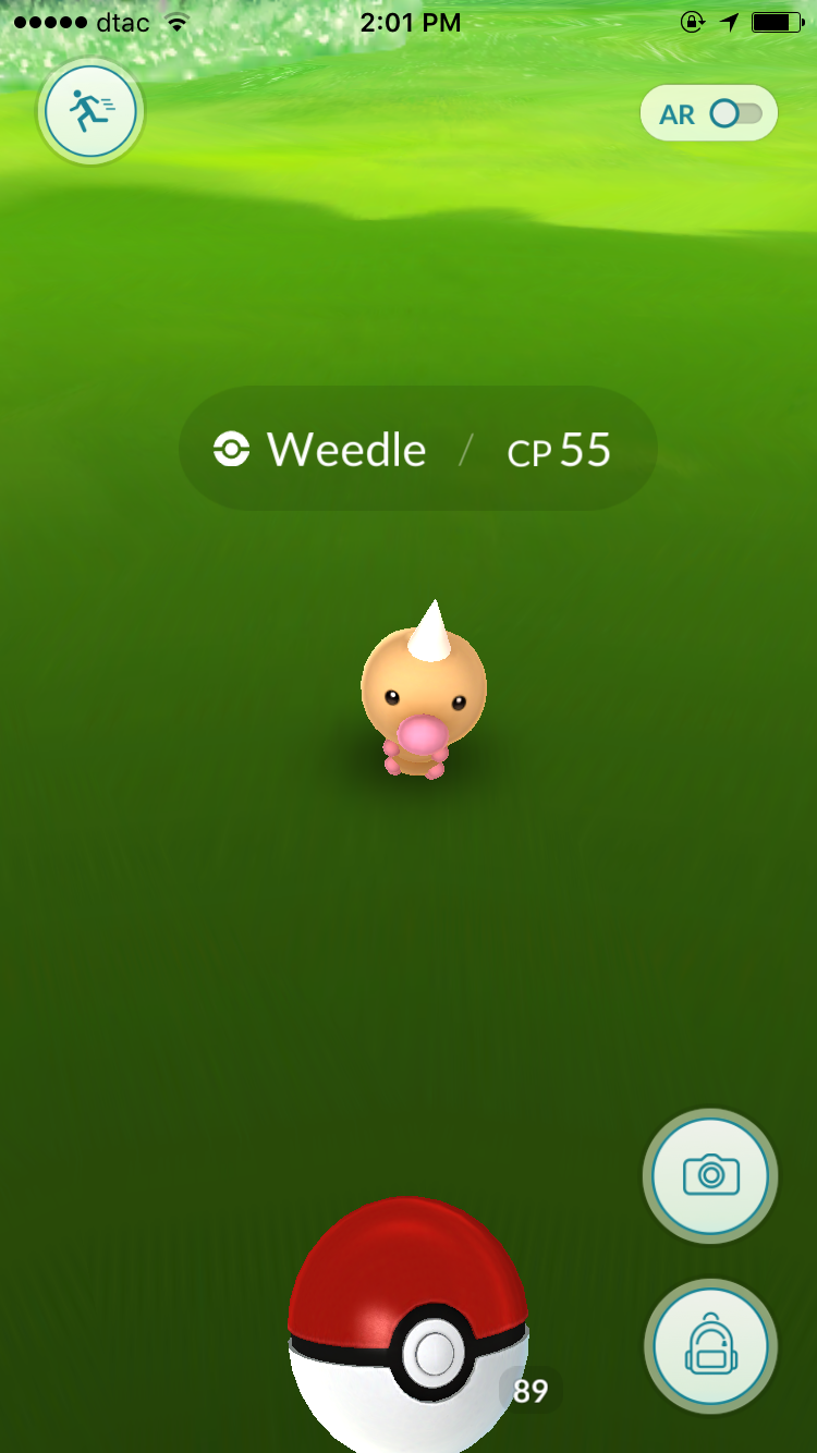 สิ่งที่สำคัญที่สุดเลยคือการปาลุกบอลให้ตรงกับโปเกมอน โดยการปาพื้นฐานให้เราแตะที่ Poke Ball แล้วปัดขึ้นไปให้โดนโปเกมอนที่ต้องการจับ แต่ทั้งนี้ความแรงก็ขึ้นอยู่กับระยะของตัวโปเกมอนด้วย เช่น สองตัว คือ Weedle และ Golbat จะเห็นว่าแตกต่างกันในตำแหน่ง โดย Weedle จะอยู่ต่ำกว่า ในขณะที่ Golbat จะอยู่สูงกว่า นั่นหมายความว่า เราต้องปัดบอลให้สูงและแรงกว่าเปรียบเทียบกับ Weedle ครับ
