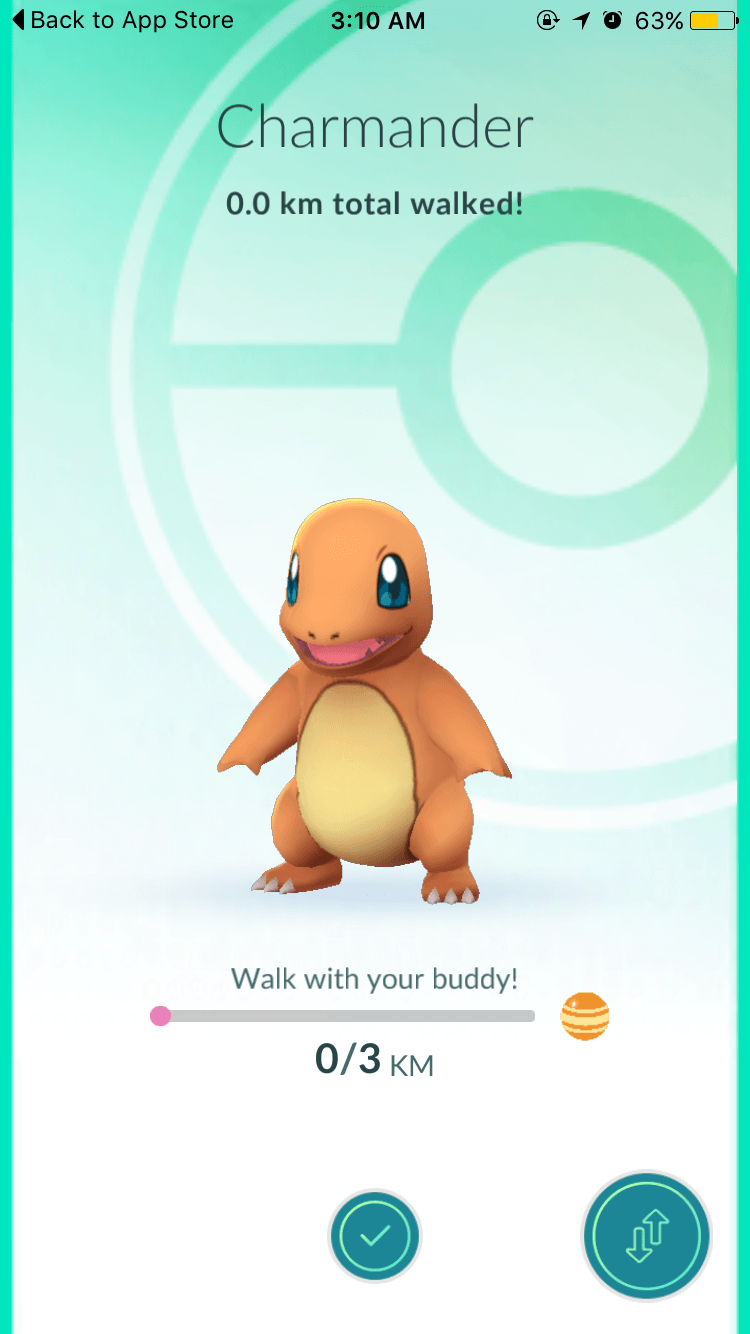 เมื่อเลือกแล้วจะมีข้อมูลระบุว่าโปเกม่อนตัวดังกล่าวได้ถูกเลือกเป็น Buddy เรียบร้อย คราวนี้สิ่งสำคัญคือการเดินให้ถึงระยะที่จะได้ Candy ครับ โดยไอคอนลูกศรขวาล่างคือสลับ/เปลี่ยนโปเกม่อนที่จะมาเป็น Buddy แต่ถ้าเปลี่ยน ระยะทางเก่าที่เดินมาทั้งหมดจะถูกรีเซ็ตใหม่ทั้งหมด แนะนำให้เดินให้ครบก่อนแล้วค่อยเปลี่ยนจะดีกว่าครับ