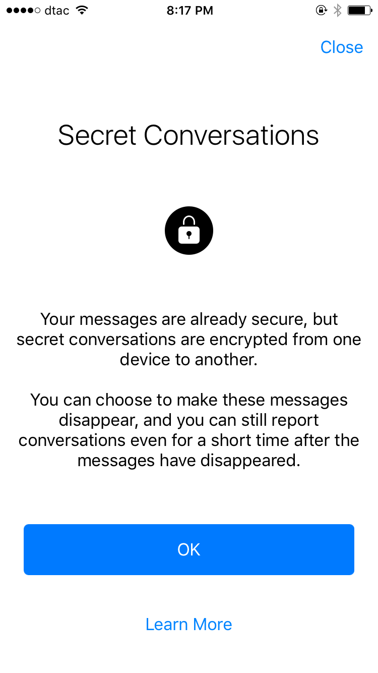 อย่างไรก็ตาม โหมดแชทลับดังกล่าวนั้นผู้ใช้งานจะต้องอัปเดต Messenger เป็นรุ่นล่าสุดทั้งสองฝ่าย หากอีกฝ่ายหนึ่งยังไม่อัปเดตจะไม่สามารถใช้งานได้ครับ