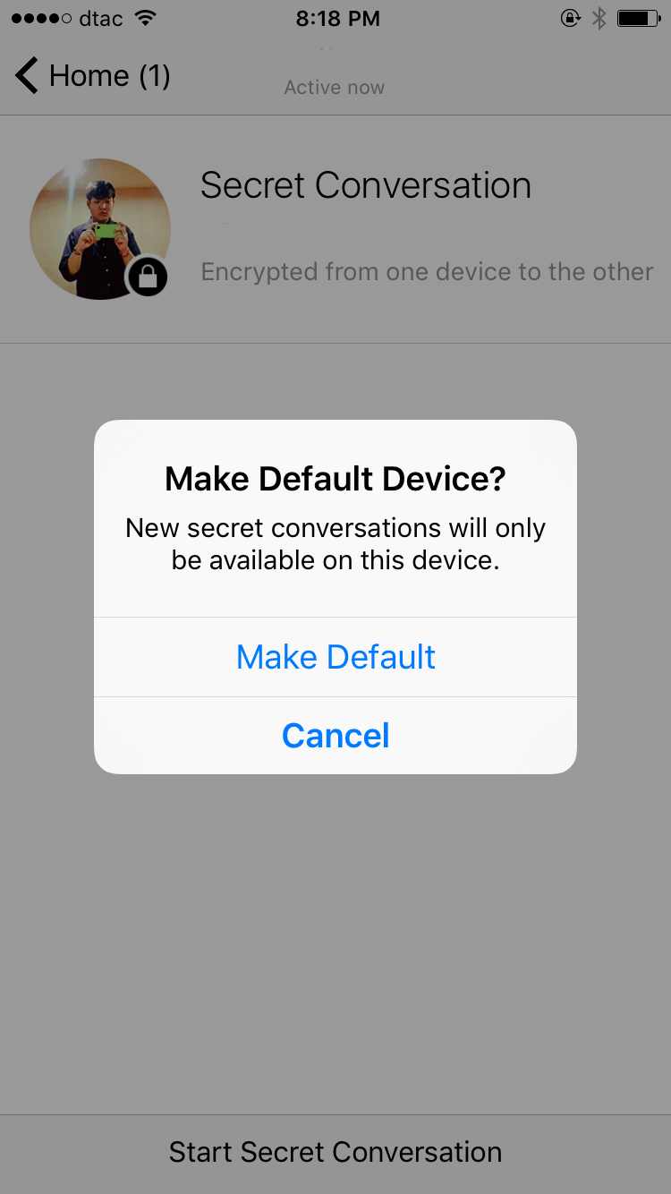จากนั้นแอปจะแนะนำการใช้ Secret Message หากคุณเพิ่งเริ่มใช้ครั้งแรก กด Start Conversation แล้วเลือก Make Default