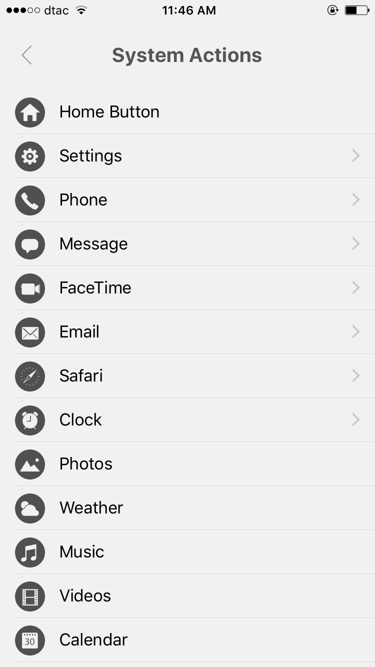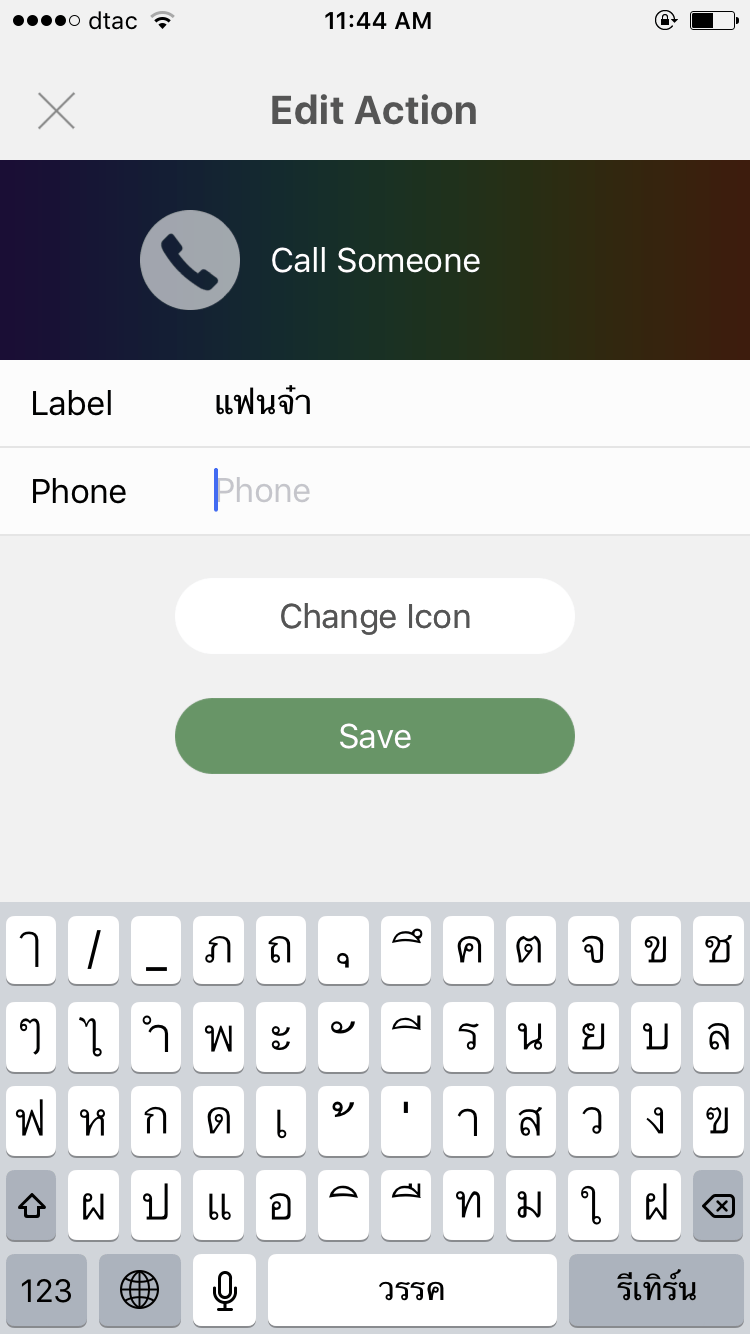 ตัวอย่างการเพิ่มคีย์ลัดโทรศัพท์ เข้าแอป > กด ‘+’ > ไปที่ System Action > Phone > Call Someone ใส่ชื่อคนที่ต้องการจะตั้งให้เป็นคีย์ลัดพร้อมใส่เบอร์โทรลงไปด้วย