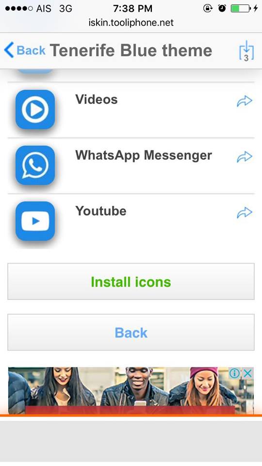 ให้เลือกไอคอนแอปที่เรามีอยู่ (ในกรณีนี้อาจมีบางธีมที่มีแอปไม่ครบทุกแอป เราต้องเลือกดีๆ ครับ) หลังจากนั้นให้กด Install icons