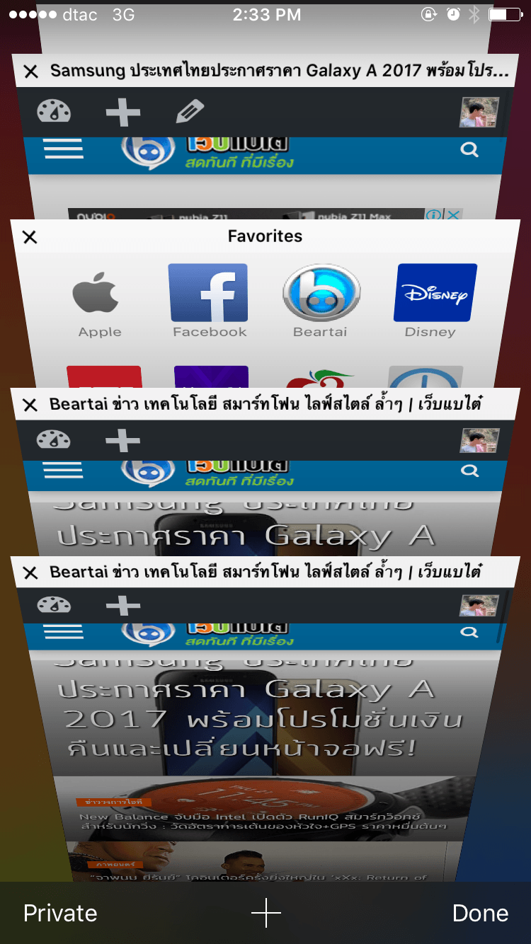 บางครั้งเราอาจจะเผลอปิดเว็บไซต์ที่กะจะเปิดค้างเอาไว้อ่านต่อโดยไม่ได้ตั้งใจ เช่นกำลังดูๆ ราคาของ Galaxy A5 รุ่นปี 2017 แล้วจะเก็บโปรโมชั่นเอาไวอ่านต่อ ถ้าเผลอกดปิดไปก็สามารถเปิดมาอ่านต่อได้ง่ายๆ โดยกดปุ่มสลับหน้าเว็บ (สี่เหลี่ยมขวาล่าง) แล้วกดปุ่ม + (ที่ใช้เปิดหน้าเว็บใหม่) ค้างเอาไว้ เลือกหน้าที่เผลอปิดไปได้ครับ