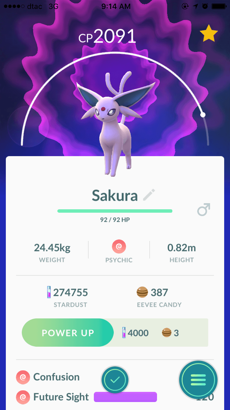 หากต้องการ Espeon ให้เปลี่ยนชื่อ Eevee เป็น Sakura