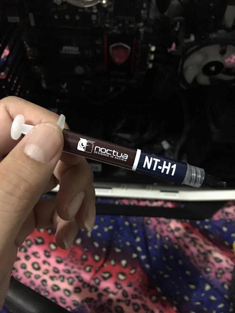 ค่อยๆ หยอดซิลิโคนลงบนกระดองขนาดเท่าเมล็ดถั่วเขียวไว้ตรงกลางกระดองก็พอ (ไม่ต้องเยอะนะครับ เดี๋ยวตอนใส่ซิงค์มันไหลเข้าไปในซอกเก็ตงานจะงอกอีก) จากนั้นให้ประกอบฮีตซิงค์กลับไปได้เลย เดี๋ยวมันก็บี้แบนไปทั่วกระดองเอง