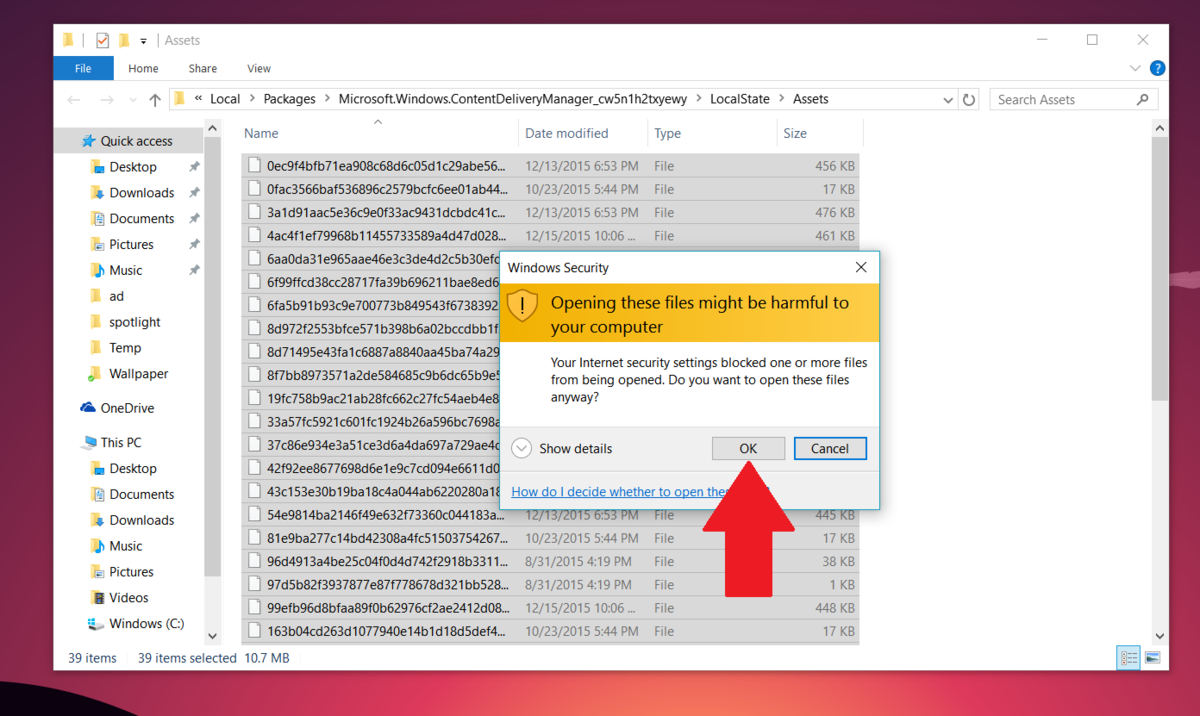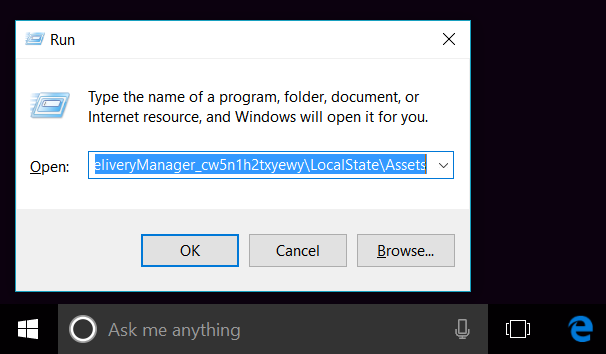 %localappdata%\Packages\Microsoft.Windows.ContentDeliveryManager_cw5n1h2txyewy\LocalState\Assets แล้วกด OK