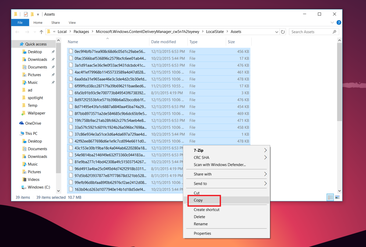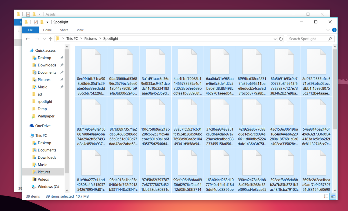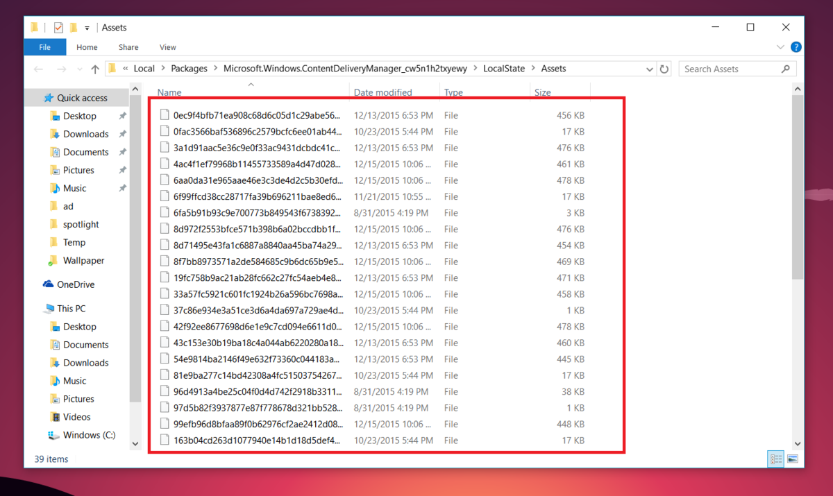 ภาพ Spotlight นั้นจะถูกบันทึกเป็นไฟล์แคชไว้ในเครื่องซึ่งจะอยู่ในโฟลเดอร์ที่ซ่อนไว้ โดยชื่อไฟล์จะเป็นชื่อที่เราไม่สามารถรู้ได้ว่าเป็นไฟล์อะไร และนี่คือวิธีบันทึกภาพเหล่านี้