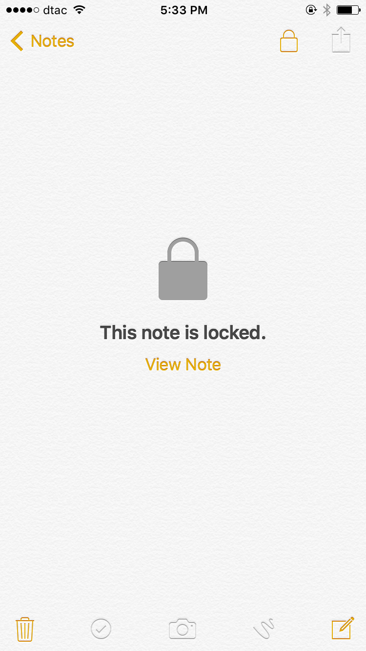 ครั้งต่อไปเมื่อต้องการอ่านโน้ตที่ล็อกเอาไว้ ระบบจะถามรหัสผ่านที่เราตั้งไว้ หรือถ้าเครื่องเรามี Touch ID ก็สามารถใช้ลายนิ้วมือเพื่อปลดล็อกได้เลย