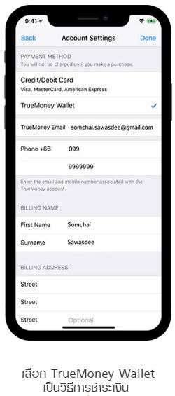 ตอนนี้ผู้ใช้งาน TrueMoney Wallet สามารถเชื่อมกระเป๋าเงินดิจิทัลเข้ากับ Apple ID ได้โดยตรงครับ เมื่อเราใช้จ่ายในระบบของแอปเปิ้ล ไม่ว่าจะโหลดแอปจาก App Store โหลดเพลง ซื้อหนังจาก iTunes Store หรือโหลดสติกเกอร์จาก LINE ก็สามารถจ่ายเงินผ่านกระเป๋าเงิน TrueMoney Wallet ได้