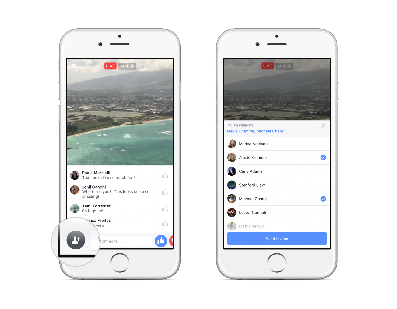 ใน Live วีดีโอจะมีปุ่มตัวเลือกให้สามารถเชิญเพื่อนมาดูวีดีโอ ณ ขณะนั้นได้ด้วย โดบเพื่อนจะได้รับการแจ้งเตือนคำเชิญให้มาดู Live Video สดๆด้วยกัน