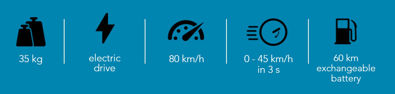 Light Rider นั้นได้ชื่อมาจากความที่น้ำหนักมาก ๆ เมื่อเทียบกับเหล่ามอเตอร์ไซค์ทั้งหลาย ซึ่งขับเคลื่อนด้วยมอเตอร์ไฟฟ้า 6 kW ทำให้สามารถเร่งความเร็วจาก 0 กม./ชม. ถึง 45 กม./ชม. ได้ภายใน 3 วินาที จะขี่ได้ระยะทาง 60 กิโลเมตร ต่อการชาร์จแบต 1 ครั้ง