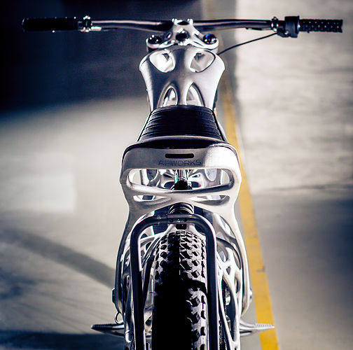 ล่าสุด APWorks ได้ผลิตมอเตอร์ไซค์ที่สร้าจากการพิมพ์สามมิติ ใช้วัสดุ APWorks’ Scalmalloy® ในการสร้าง ทำให้มีน้ำหนักเพียง 35 กิโลกรัมเท่านั้น